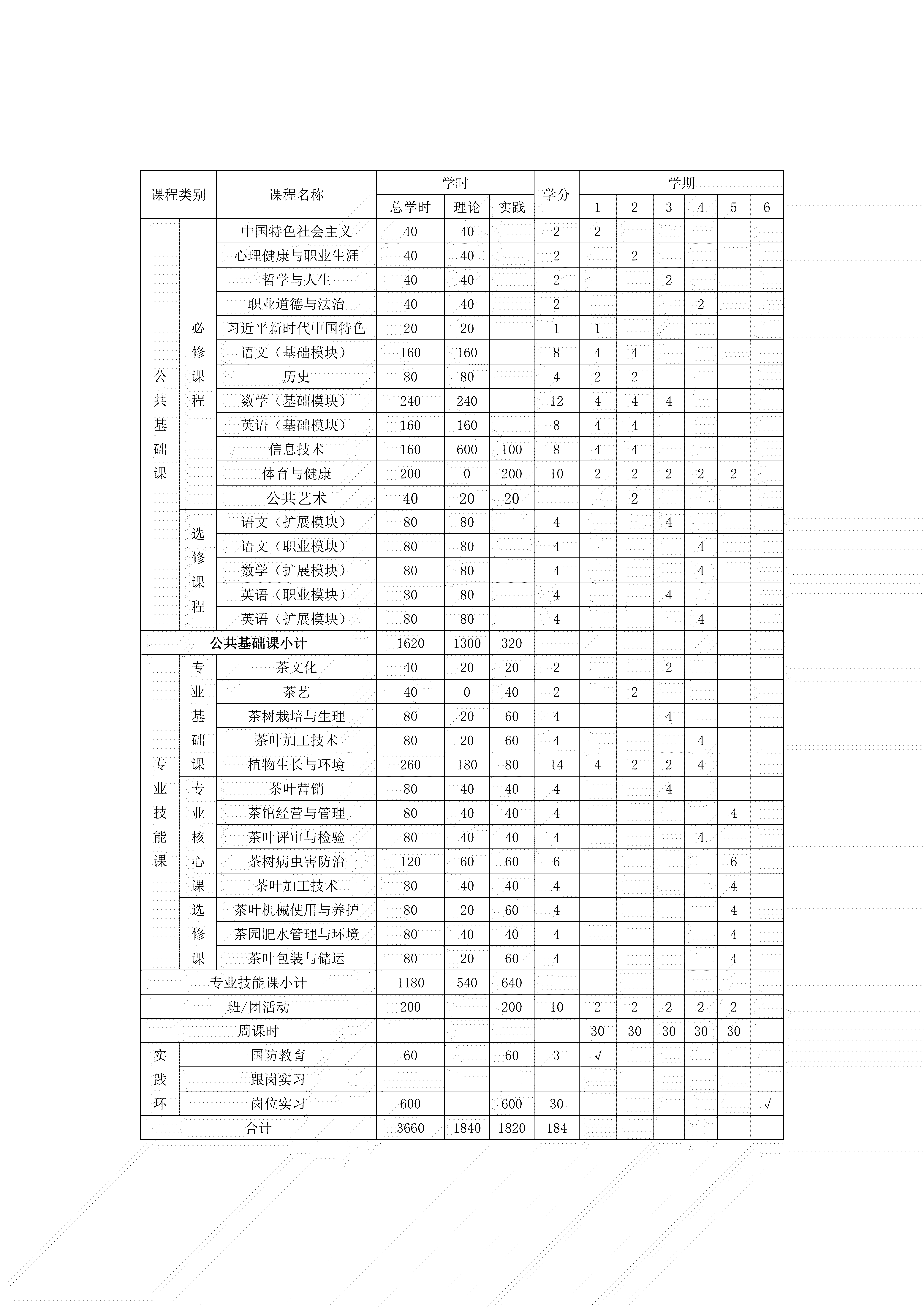 三明市农业学校茶叶生产与加工专业人才培养方案(2024)