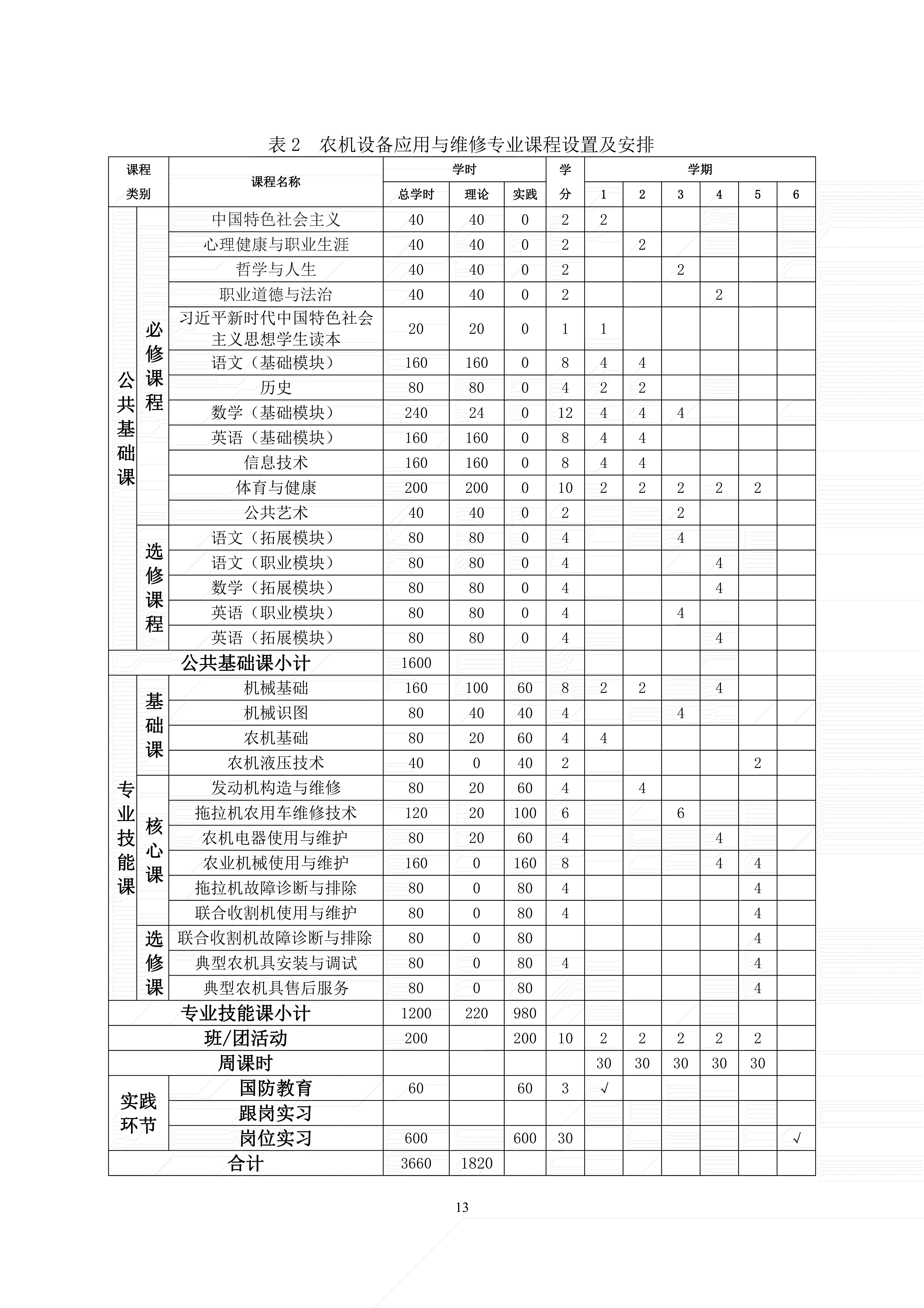 三明市农业学校农业设备应用与维修专业人才培养方案(2024)