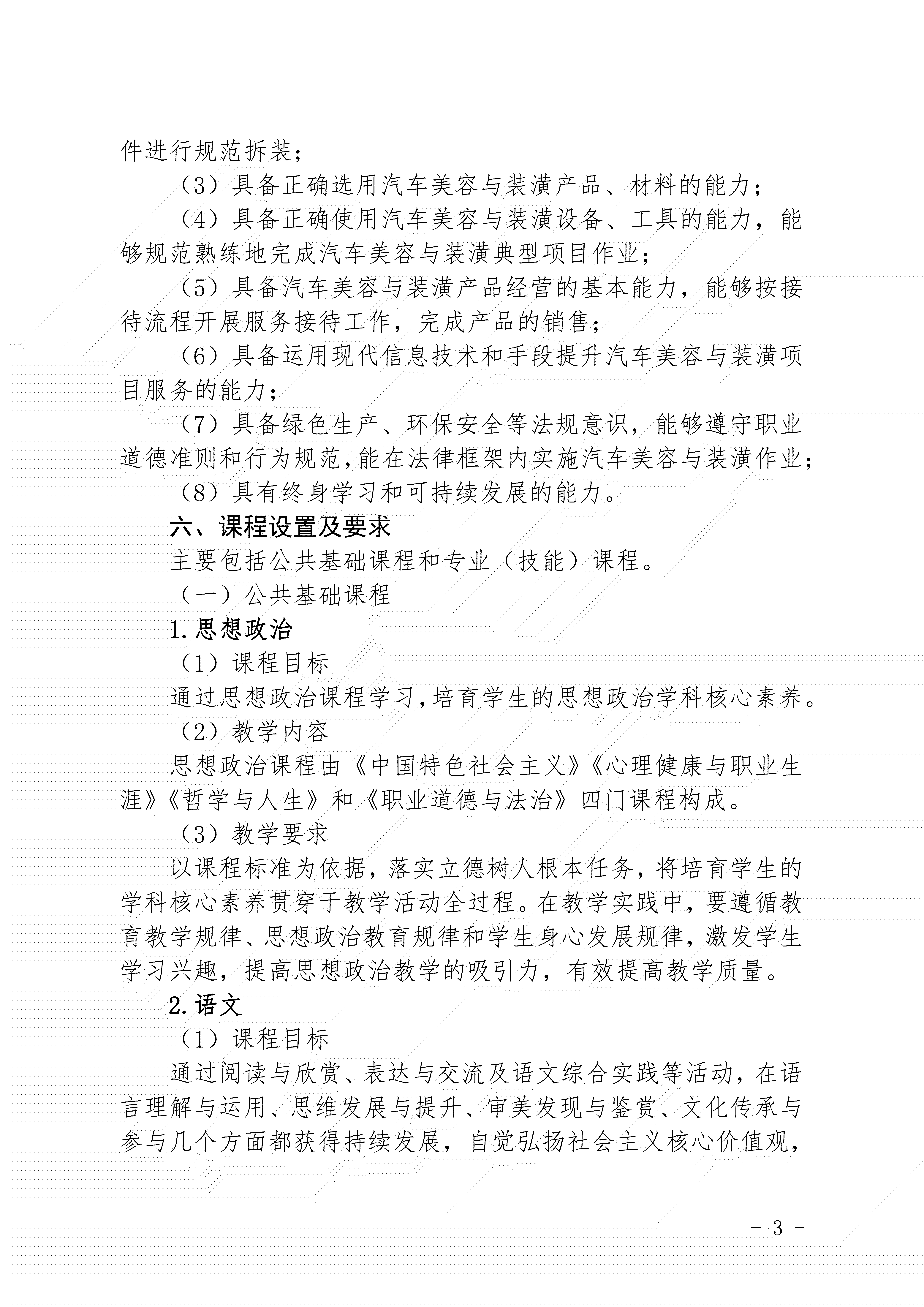 三明市农业学校汽车美容与装潢专业人才培养方案(2024)
