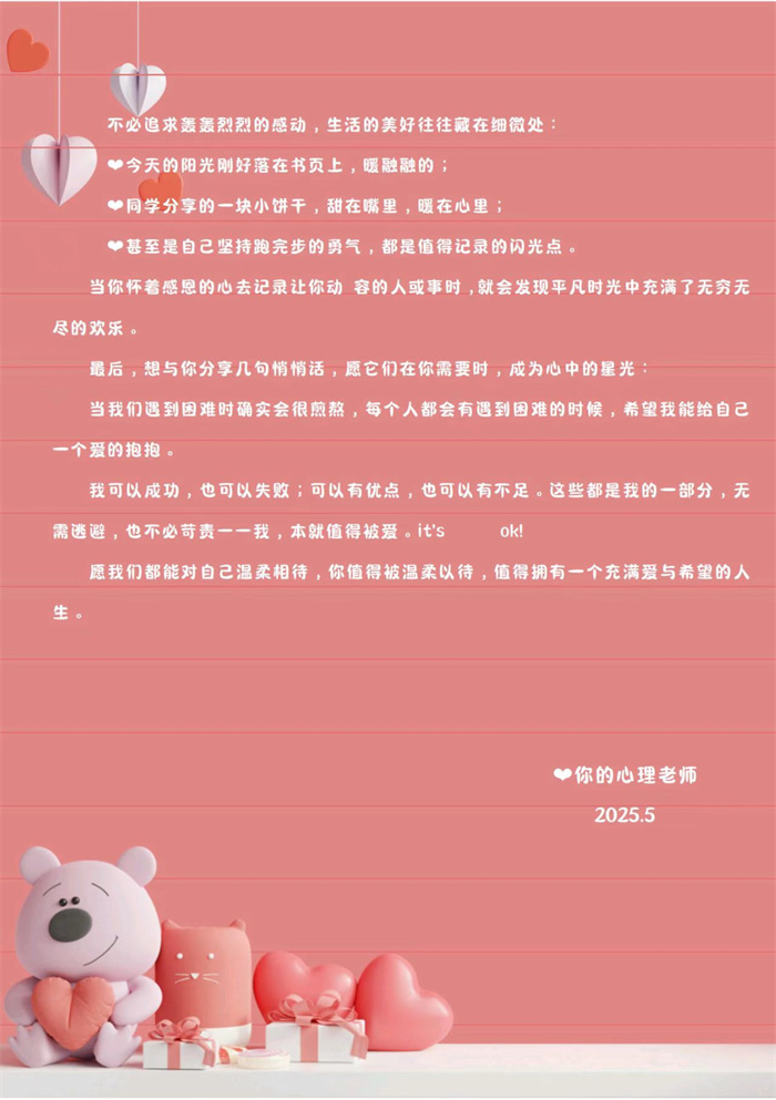 花开五月 爱满心田丨开云(中国)官方525心理健康周活动:以信传心——一份爱自己倡议书