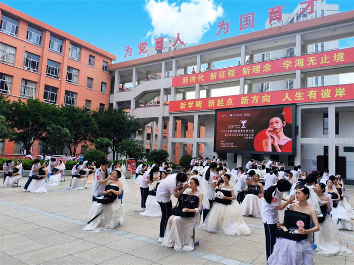 2023年5月,学校在职业教育活动周与企业联合举办美妆大赛