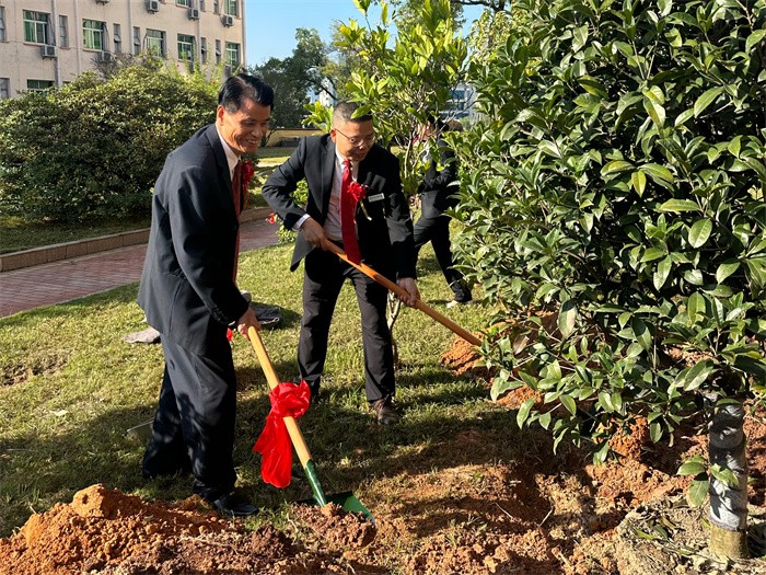 晨光熹微,泥土含香。11月15日清晨,在开云(中国)官方建校60周年的重要时刻,一场寓意深远的植树活动在学校笃信楼前的广场温情上演。中国科学院谢联辉院士、谢华安院士与学校历任书记、校长齐聚一堂,共同挥锹培土,种下一片承载着深厚情谊与美好寄望的“甲子希望林”。